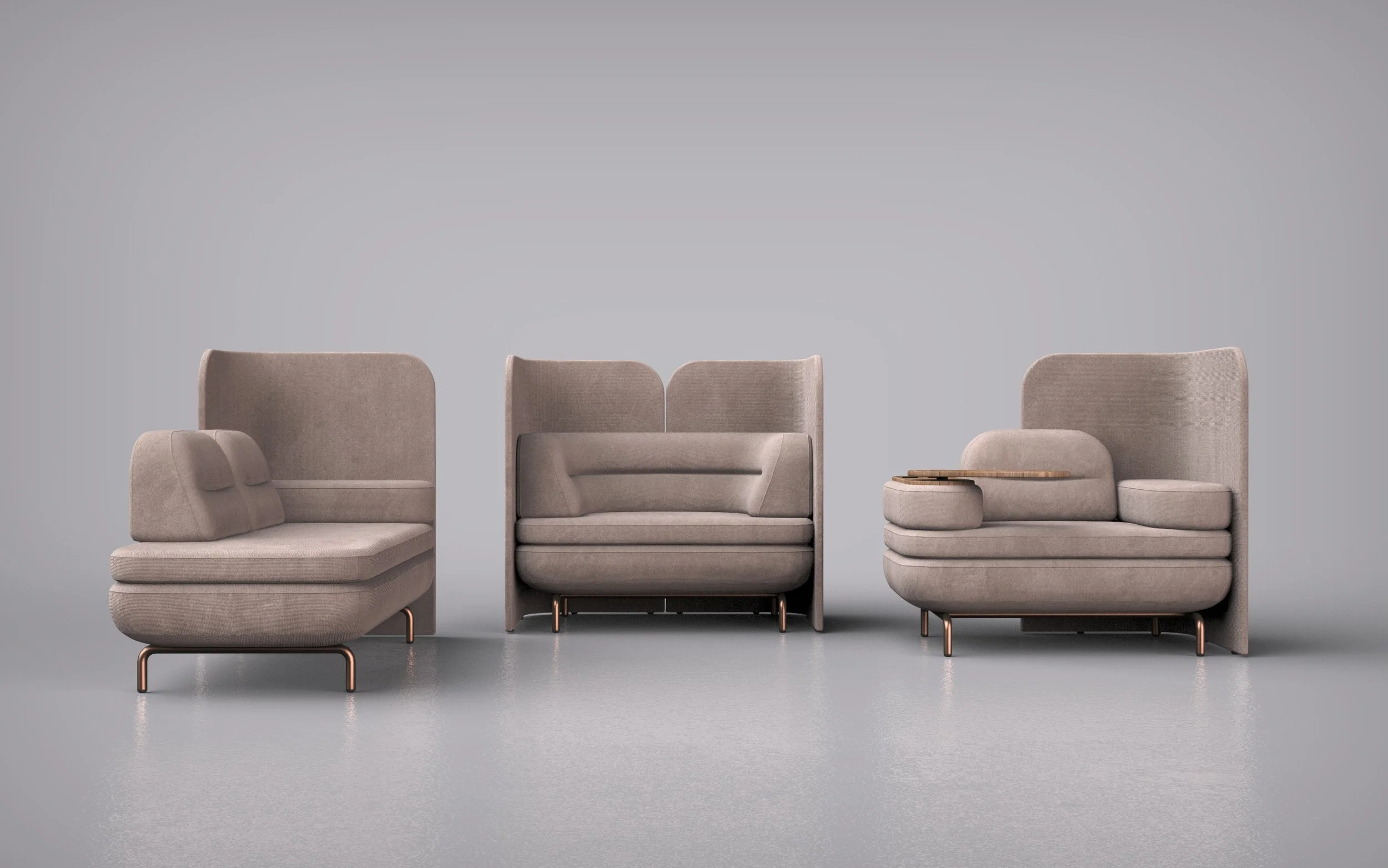 The FUTO Collection explores the intersection between furniture, architecture, and spatial experience. Conceived as a sculptural seating system, the collection introduces bold yet soft forms that bring warmth and presence to contemporary interiors. Generous proportions and refined geometry create a strong visual identity while maintaining a sense of comfort and approachability. Defined by its rounded volumes and clean lines, FUTO balances softness with structure. Upholstered surfaces emphasize tactility and material richness, while the elevated base gives the pieces a light and floating quality. The design language is minimal yet expressive, allowing the furniture to function both as a practical seating solution and as a spatial centerpiece within an interior.