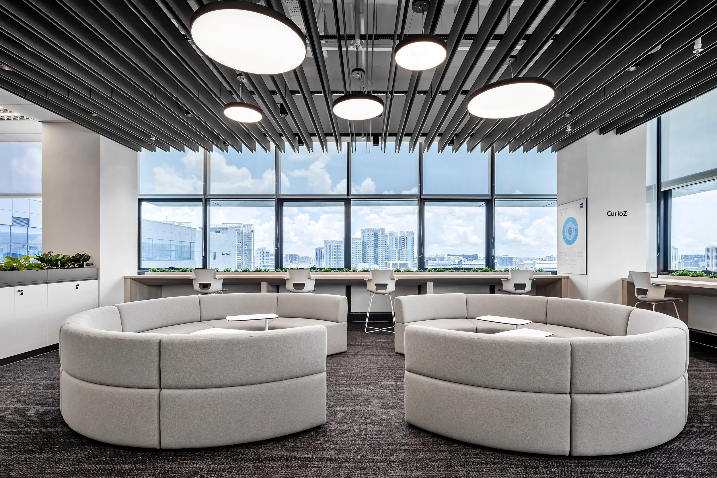 The shift from a traditional office to an activity-based working office represents a fundamental design transformation. Transforming Carl Zeiss Singapore into ABW concept with open cubicles, window view hot desks, and fixed workstations give way to flexible and dynamic spaces. The design narrative focuses on seamlessly blending technology, nature, and a human-centered perspective.